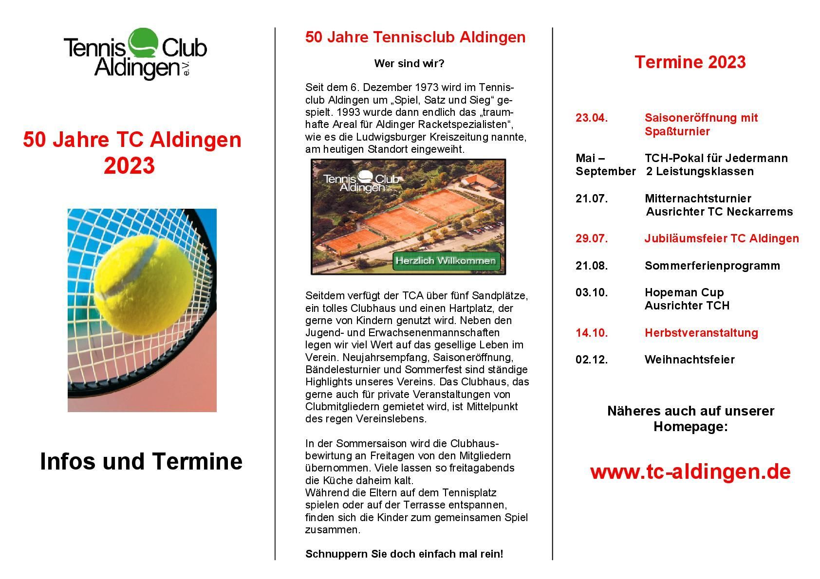 wie bereits schon angekündigt, möchte ich euch heute die diesjährigen Termine des TC Aldingen sowie weitere Tennistermine in Remseck bekanngeben.