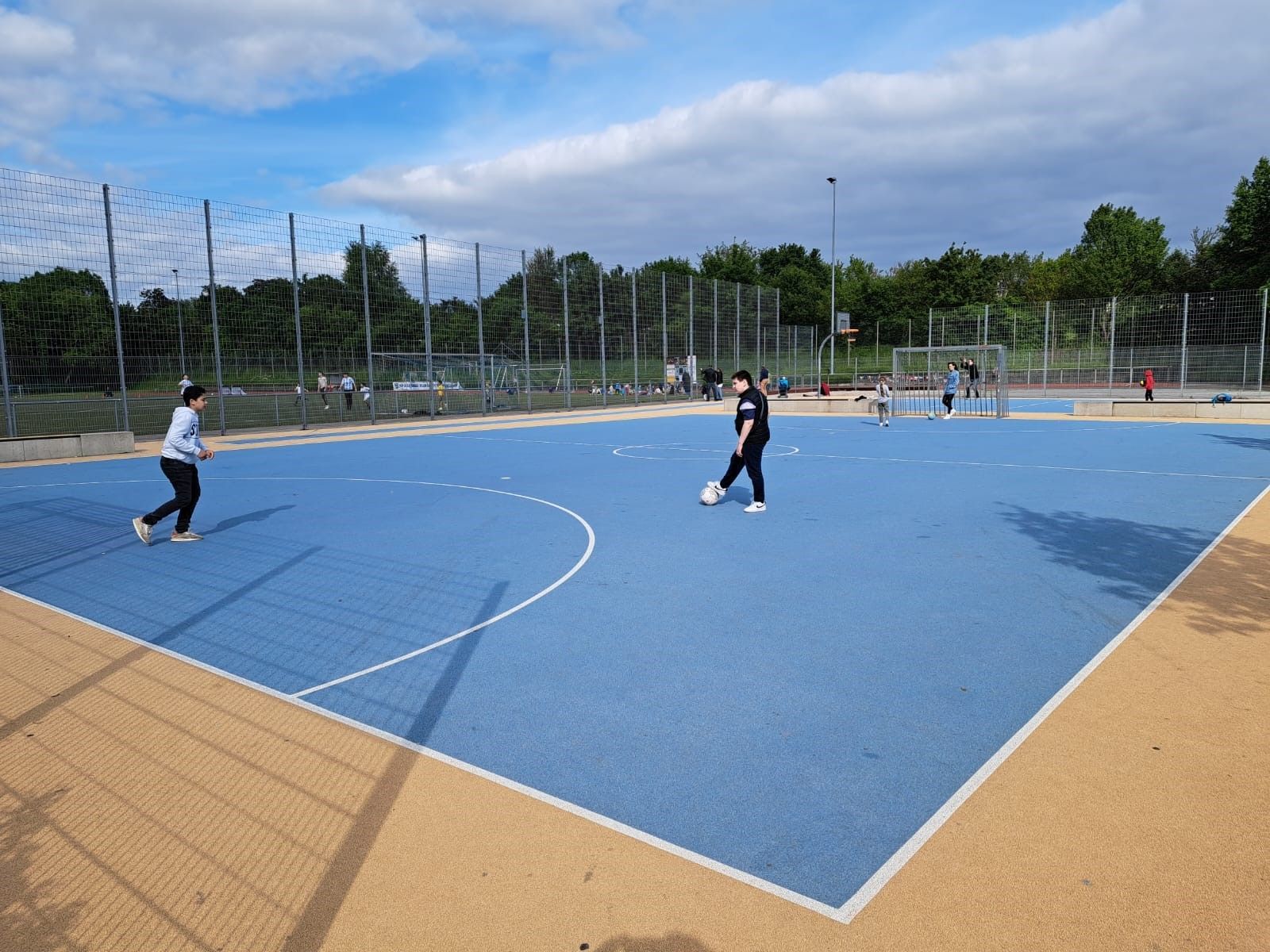 Zwischen den großen Sportplätzen gab es ein Kleinspielfeld für Handball mit kleinen Toren.