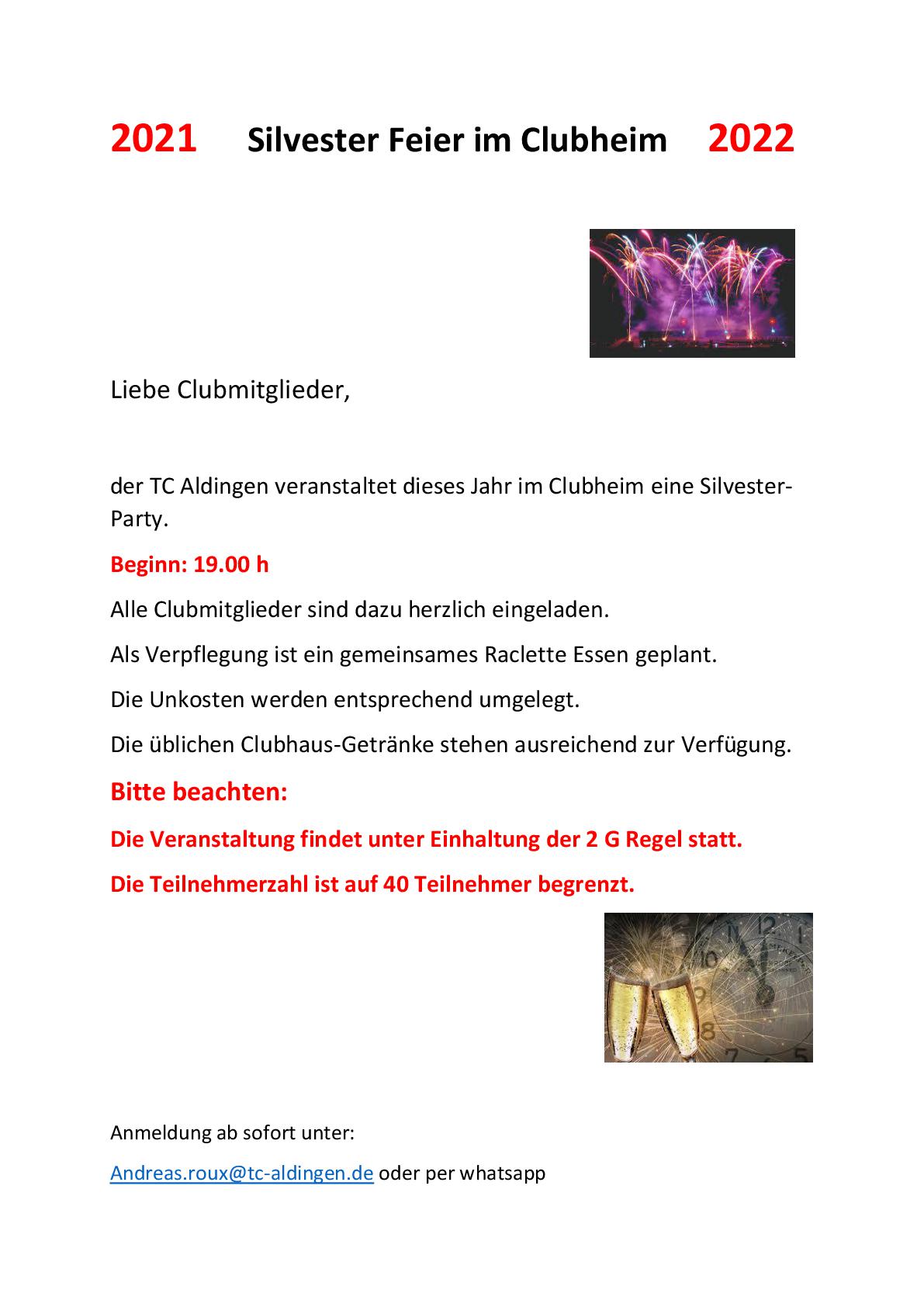 Silvesterparty im Clubheim