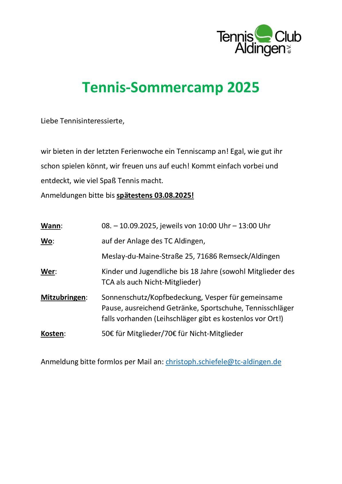 *Herren 55 - fast unschlagbar* (spg) Eine starke Saison haben die Spieler des Teams der Herren 55 in diesem Sommer hingelegt. Die weiteste Anfahrt zum Spielort hatte man beim ersten Auswärtsspiel Mitte Mai beim TC Lienzingen - am äußersten westlichen Ende des Bezirks, wo unsere Aldinger mit 7:2 einen lockeren Sieg erreichten. Das Heimspiel gegen Erdmannhausen verlief dann Anfang Juli in einer wahrhaftigen Hitzeschlacht. Die zahlreichen Zuschauer auf der Terrasse sahen dennoch hochklassige Einzel und Doppel und konnten am Ende zum 6:3 applaudieren. Die Begegnungen gegen TC Buocher Höhe (2:7) und beim TC Kirchhausen (6:3) mussten jeweils unglücklich abgegeben werden und doch hat die Mannschaft den Klassenerhalt geschafft. Besonderen Verdienst an diesem Verlauf hat Ricardo Berger, der kein einziges Match abgeben musste.  Es spielten: Siegbert Kleinert, Michael Rhode, Werner Pfisterer, Jan Müller, der unbesiegbare Ricardo Berger, Atha Tsunginidis,, Axel Morlock, Wolfgang Jäger, Andreas Schmautz
